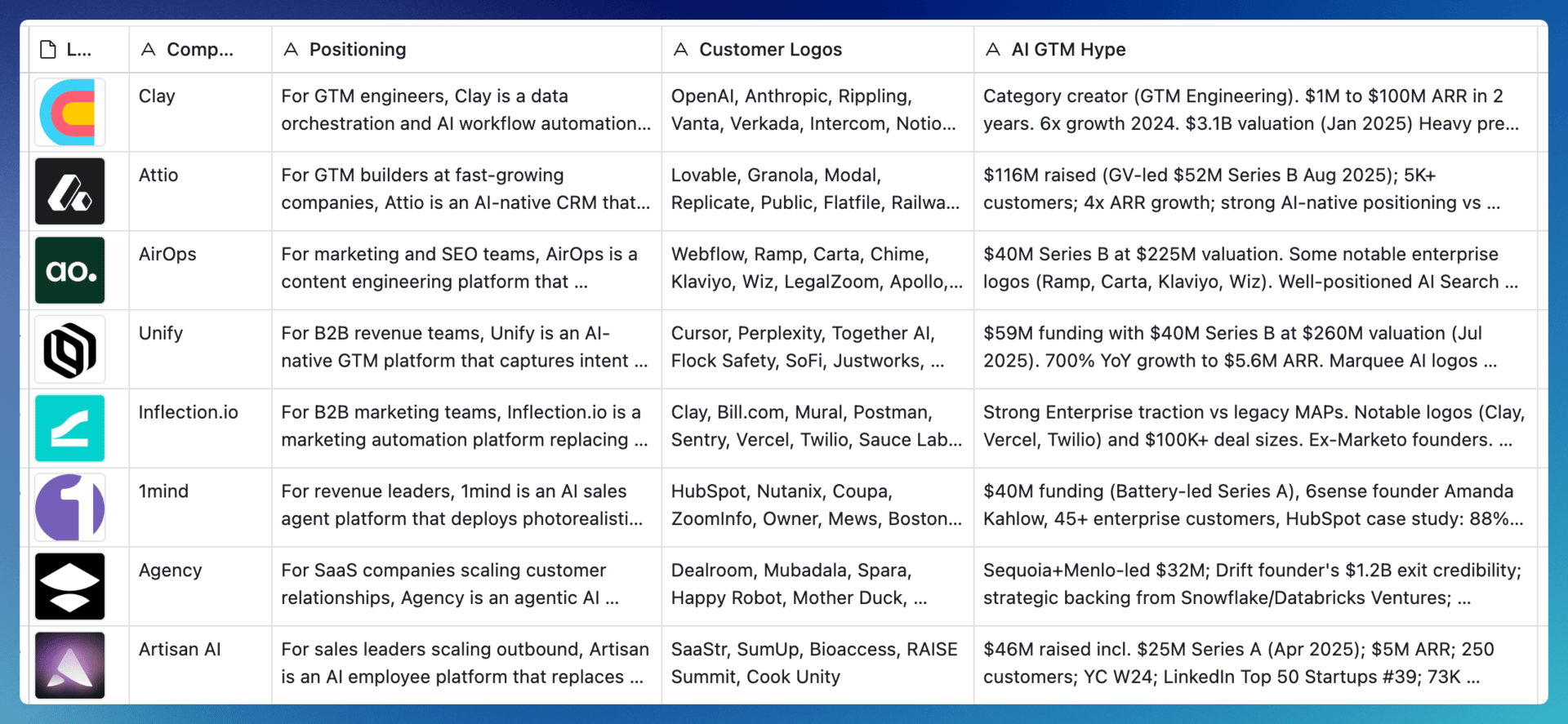 That said, there are a lot of interesting things happening in AI GTM. So I put together a tracker of the companies worth watching.